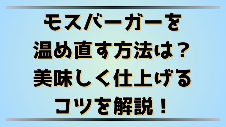 冷めてしまったモスバーガーを、美味しく温め直す方法を知りたい人は多いですよね。 この記事では、モスバーガーを電子レンジ・トースター・フライパンなどでふんわり香ばしく温め直すコツを詳しく紹介します。 野菜がしなしなにならず、ソースの旨味を逃さずに再加熱するポイントも解説します。 この記事を読めば、持ち帰り後でもまるで出来たてのようなモスバーガーを味わうことができます。 お家で簡単にできる方法なので、 […]