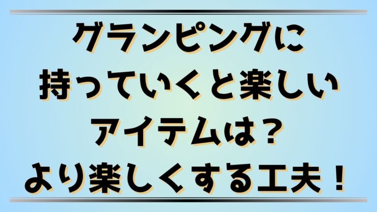 グランピングに持っていくと楽しいアイテムで悩んでいませんか。 せっかくの非日常体験なのに、何を準備すれば満足度が上がるのか分からないと不安になりますよね。 この記事では、グランピングに持っていくと楽しいおすすめアイテムを、遊び・食事・夜時間の視点から分かりやすく解説します。 さらに、満足度を一気に高める工夫も具体的に紹介しています。 この記事を読めば、グランピングの楽しさを何倍にも引き上げる準備が […]