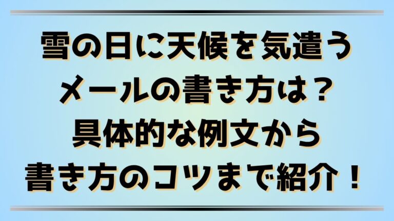 雪の日は、交通の乱れや寒さでいつも以上に大変な一日になりますよね。 そんなときに、相手の体調や安全を気遣う一通のメールがあるだけで、心がふっと温かくなるものです。 この記事では、「天候を気遣う雪の日のメール」をテーマに、マナーや使い方、そして実際に使える文例を紹介します。 ビジネスでもプライベートでも、相手に優しさが伝わる言葉選びのコツをわかりやすくまとめました。 雪の日にこそ、心のこもったメッセ […]