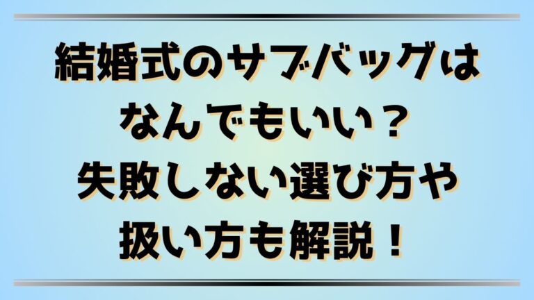 「結婚式のサブバッグって、正直なんでもいいのかな?」と思っていませんか。 実はその考え、少し危険なんです。 結婚式はフォーマルな場であり、サブバッグひとつでも印象が大きく変わります。 この記事では、「なんでもいい」と思っている人でもすぐに実践できる、サブバッグ選びの基本とマナーをわかりやすく解説します。 素材や色、サイズ、そして会場での扱い方までを丁寧に紹介しているので、これを読めば“上品で好印象 […]