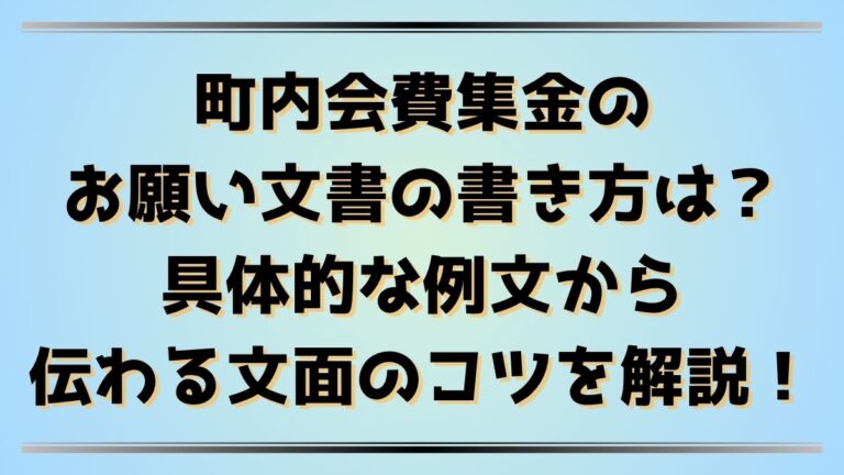 町内会費集金のお願い文書を書くとき、「どんな言葉で伝えればいいのか」「失礼にならない表現が知りたい」と悩む方は多いです。 特に初めて班長を担当する場合、住民の方に気持ちよく協力してもらえるよう、文面の書き方には気を遣いますよね。 この記事では、町内会費集金のお願い文書を作成するときに押さえておきたい基本の書き方と、すぐに使える丁寧な例文を紹介します。 正式な案内文からメモ書き、掲示用まで幅広く使え […]